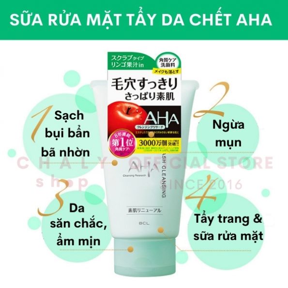 – Những người sử dụng AHA wash cleansing thường chỉ cần dùng thêm tẩy tế bào chết chuyên dụng 1 lần/ tuần là đủ, vì da thường xuyên được làm sạch từ từ mỗi ngày khi rửa mặt rồi