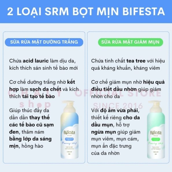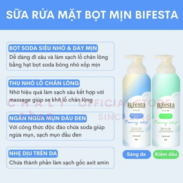 Sữa rửa mặt tạo bọt Bifesta có mấy loại?