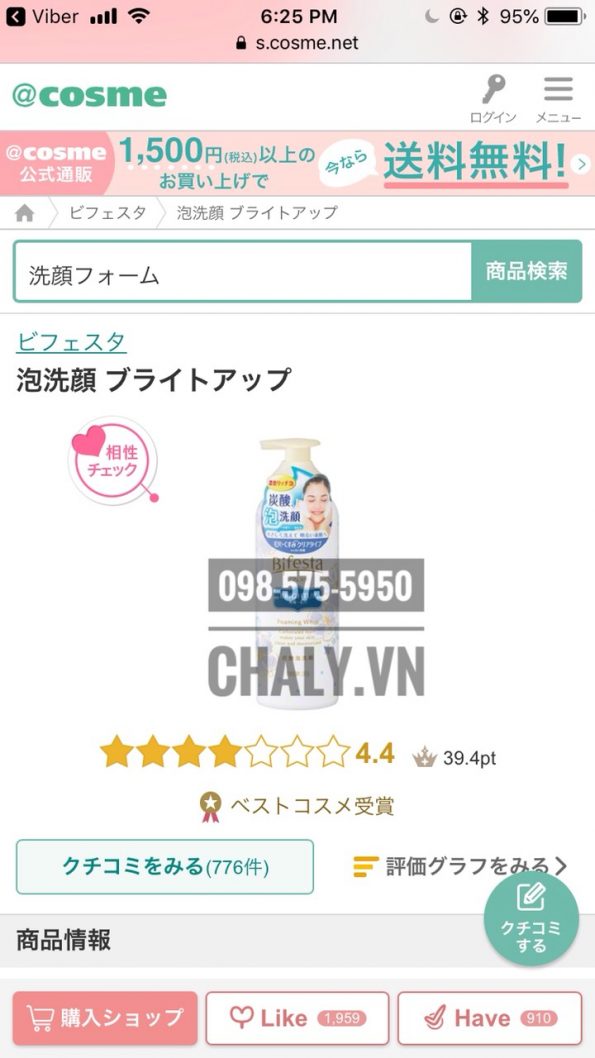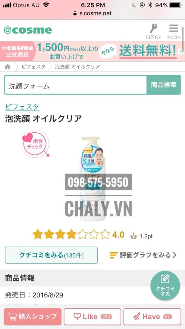– Người dùng Nhật Bản review sữa rửa mặt Bifesta vô cùng cao, tới 4.4 trên Cosme Ranking với gần 800 đánh giá