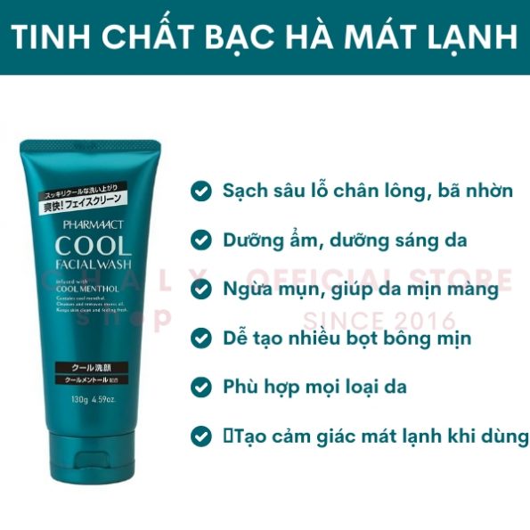 - 5 Review sữa rửa mặt cho nam bạc hà mát lạnh Pharmaact Cool 130g Nhật