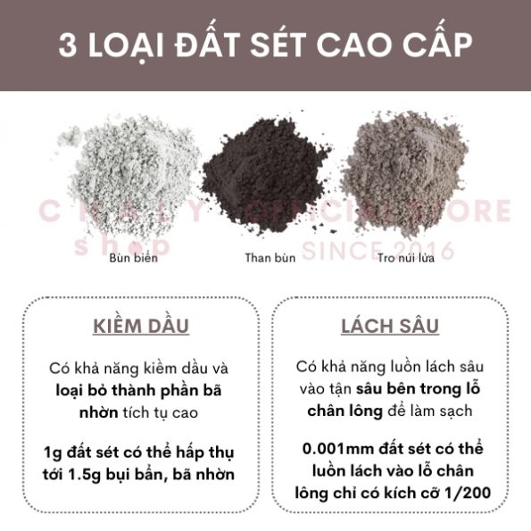 + Kiểm soát lượng bã nhờn trên da: Giúp da sạch sâu, hút hết mọi bụi bẩn bã nhờn từ sâu bên trong lỗ chân lông