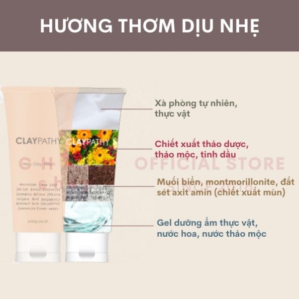 – Thành phần chính của sữa rửa mặt đất sét thảo mộc Claypathy là 3 loại đất sét cao cấp và các vitamin thảo mộc siêu an toàn, lành tính cho da