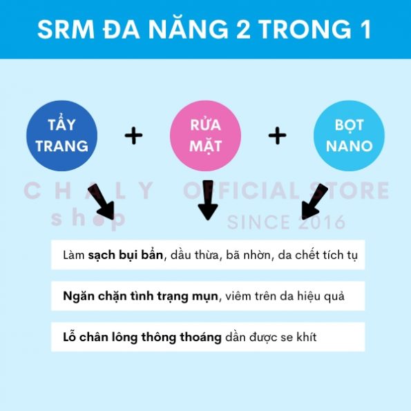 + Làm sạch dầu thừa, bã nhờn và bụi bẩn tích tụ trên da