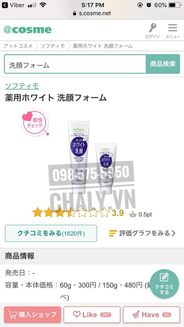Giá sữa rửa mặt kose softymo của nhật rất rẻ trong khi review sữa rửa mặt kose softymo white cleansing wash 190g lại rất cao, tới hơn 1600 đánh giá trên Cosme Ranking Nhật