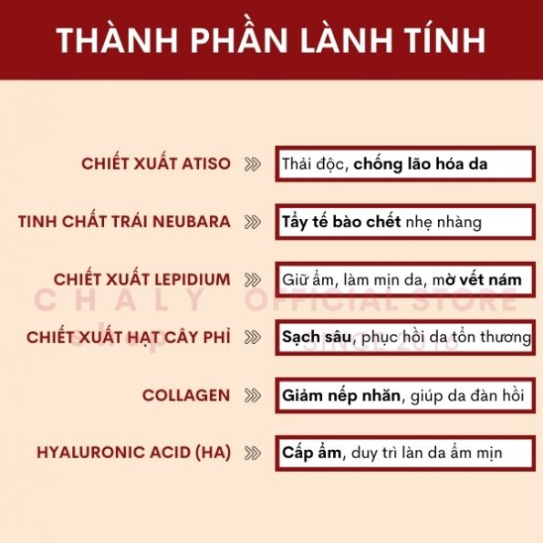 – Thành phần lành tính, chủ yếu là các chiết xuất thiên nhiên dịu nhẹ với da