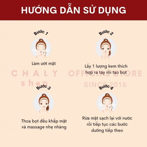 – Sau khi làm ướt mặt, lấy 1 lượng sữa rửa mặt thích hợp (1-2cm) ra tay hoặc lưới tạo bọt rửa mặt, đánh bọt bông xốp mịn rồi thoa đều khắp mặt và massage đều