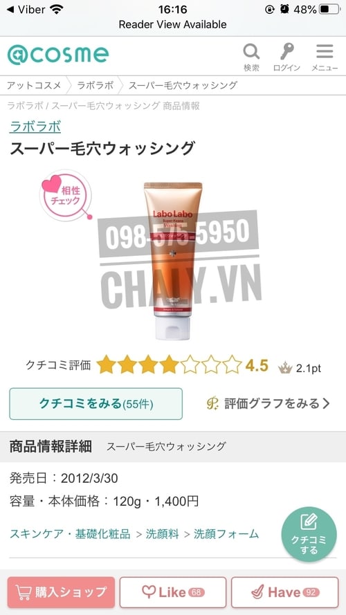 Từ khi ra đời tới nay, Labo Labo super keana wash 120g liên tục được đánh giá cao trên các diễn đàn review mỹ phẩm Nhật uy tín như Cosme japan