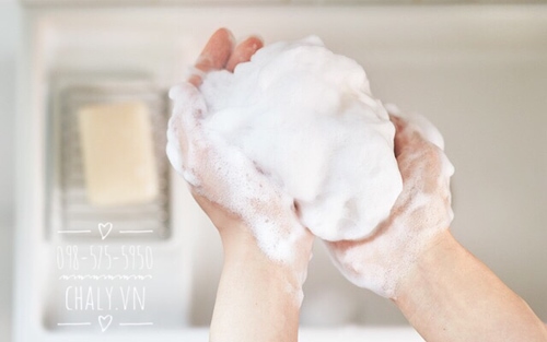 – Sau khi tẩy trang, lấy lượng sữa rửa mặt cỡ hạt đậu ra tay, dùng bàn tay hoặc lưới tạo bọt Nhật đánh bông bọt trắng mịn tới khi hoàn toàn không còn nhớt sữa rửa mặt nữa