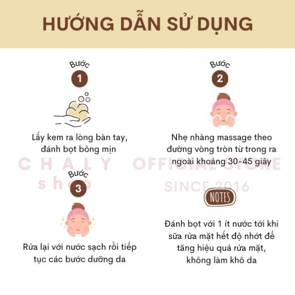 – Nhẹ nhàng xoa bọt rửa mặt lên da mặt và massage nhẹ nhàng theo các đường vòng tròn hoặc từ trong ra ngoài