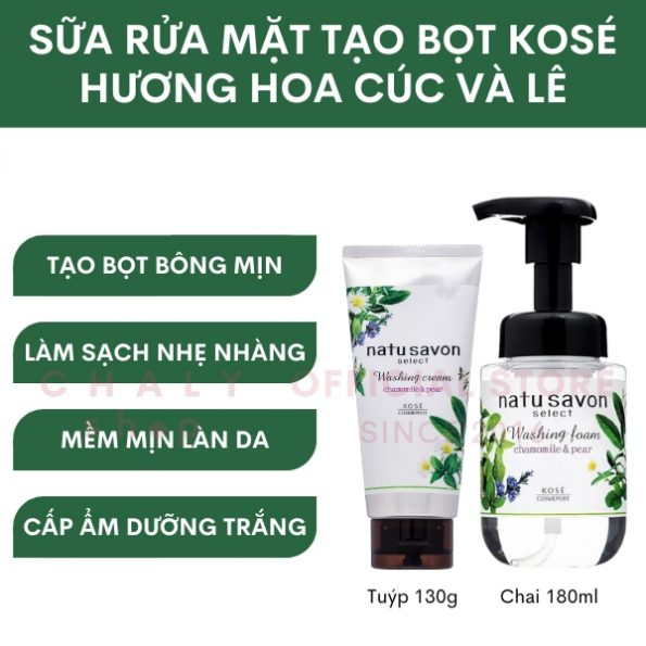 - 6 Review sữa rửa mặt tạo bọt hoa cúc và lê Kose Natu Savon Nhật