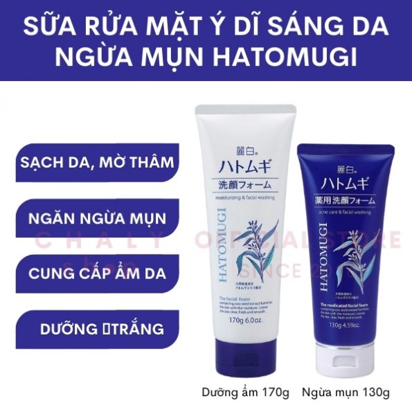 – Tuýp sữa rửa mặt cấp ẩm dưỡng trắng da Hatomugi Naturie W Cleansing Foam tại Chaly là mẫu mới nhất hiện hành