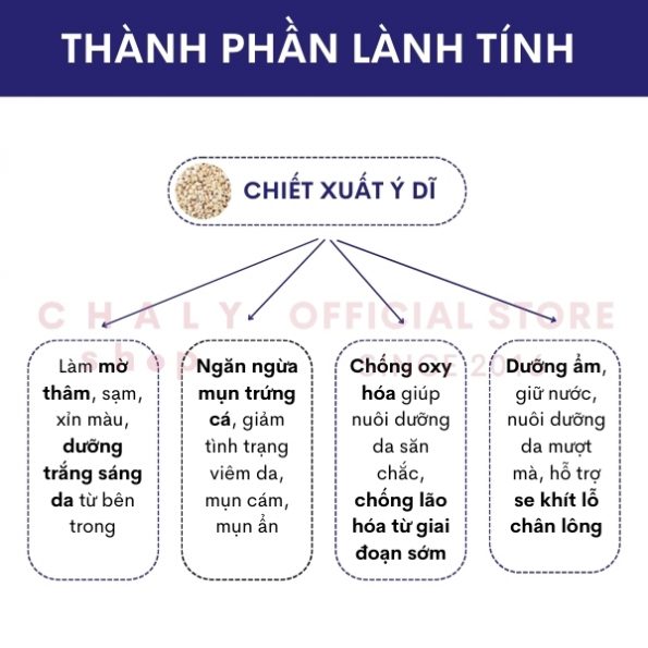 – Các thành phần này có hiệu quả cao trong việc tăng cường độ ẩm, giúp da mịn màng, căng sáng. Đồng thời, hatomugi ý dĩ có khả năng kiềm hãm và điều chỉnh hắc sắc tố melanin bên dưới da, lâu dài sẽ giúp làm mờ các vùng da sạm xỉn, khô héo, thâm đen