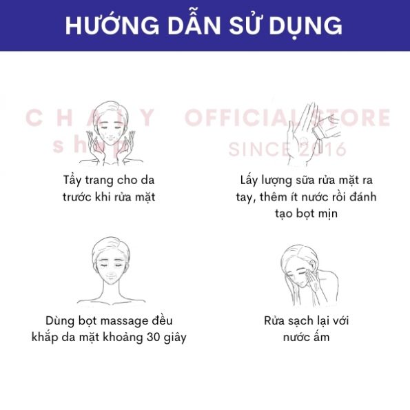 – Nên đánh bọt kĩ tới khi sữa rửa mặt hết độ nhớt để tăng hiệu quả rửa mặt, không làm khô da
