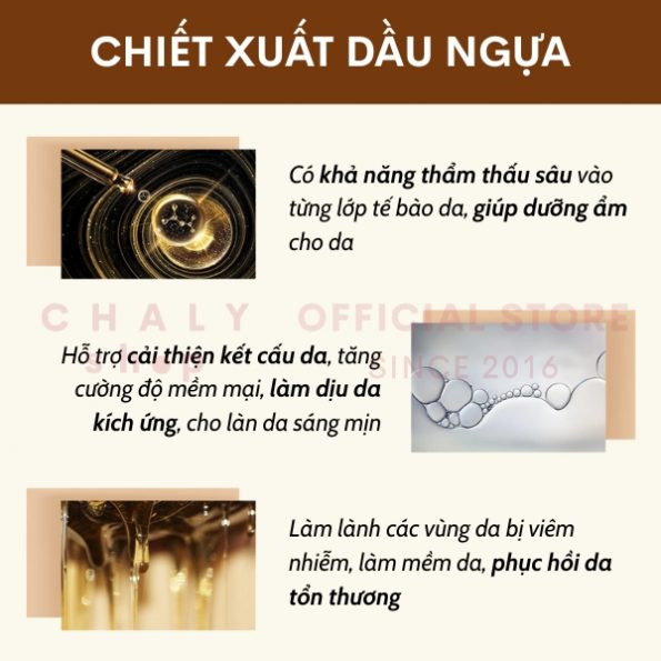 – Chiết xuất dầu ngựa nuôi dưỡng và dưỡng ẩm cho da trong thời gian dài, mà hoàn toàn không gây nhờn bết