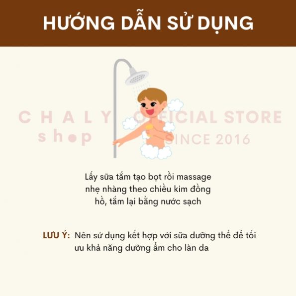 – Cho 1 lượng sữa tắm thích hợp vào tay hoặc bông tắm