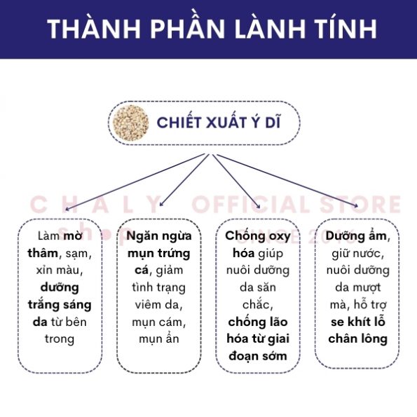 – Song song với đó, thành phần dưỡng ẩm thiên nhiên từ ý dĩ và hyaluronic HA thẩm thấu sâu, nuôi dưỡng da căng mịn mượt mà từ bên trong. Các tế bào da được hấp thụ đủ dưỡng chất trở nên sáng hồng và mịn màng hẳn lên sau một thời gian sử dụng