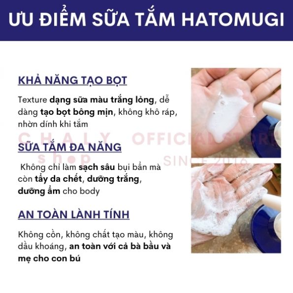Shop Nhật Chaly cam kết cung cấp sản phẩm sữa tắm trắng da mờ thâm body hatomugi và nhiều sản phẩm sữa tắm dưỡng thể nội địa Nhật chính hãng 100%. Quý khách có thể đặt mua bằng các cách sau