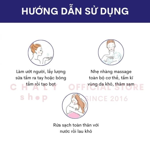 – Mục đích sử dụng: Làm sạch da toàn thân, dưỡng ẩm và dưỡng trắng body