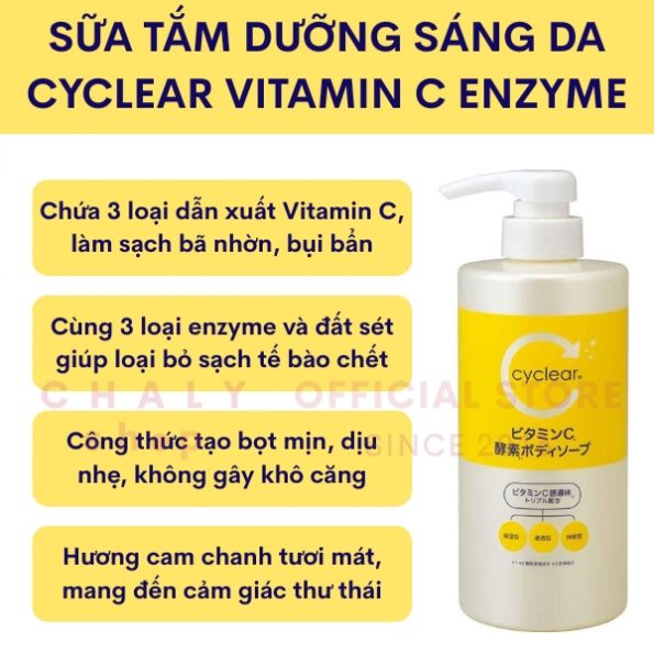 - 2 Sữa tắm dưỡng sáng Cyclear Vitamin C Enzyme Body Soap 500ml Nhật có tốt không?