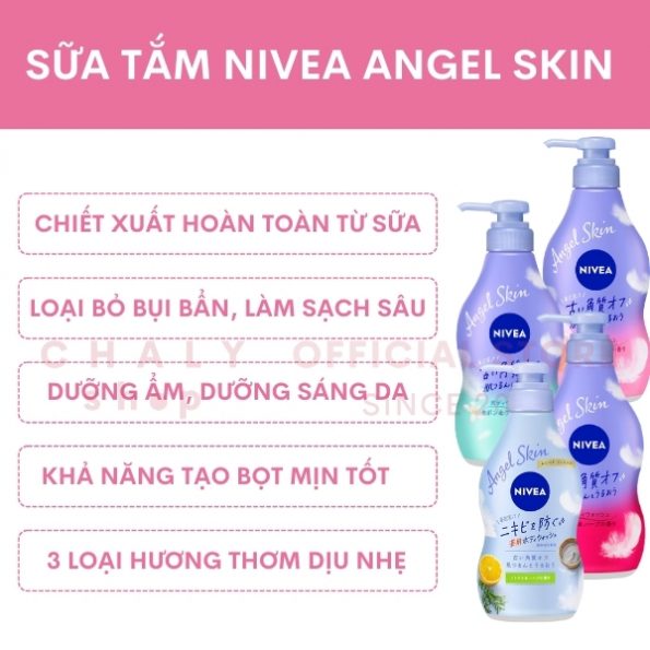 Thông tin chi tiết – Sữa tắm chiết xuất từ sữa Nivea Angel Skin Nhật