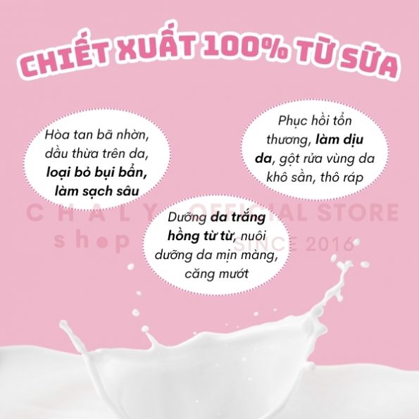 – Ngoài ra, trong sữa còn chứa các chất béo, protein, vitamin và khoáng chất có tác dụng làm dịu và nuôi dưỡng da, giúp da sáng mịn hơn từng ngày
