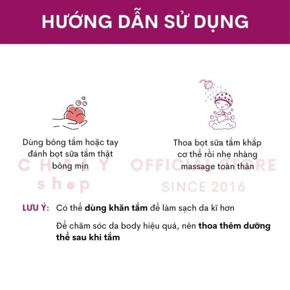 – Dùng bông tắm hoặc tay đánh bọt sữa tắm Macherie fragrance body soap càng bông mịn càng tốt