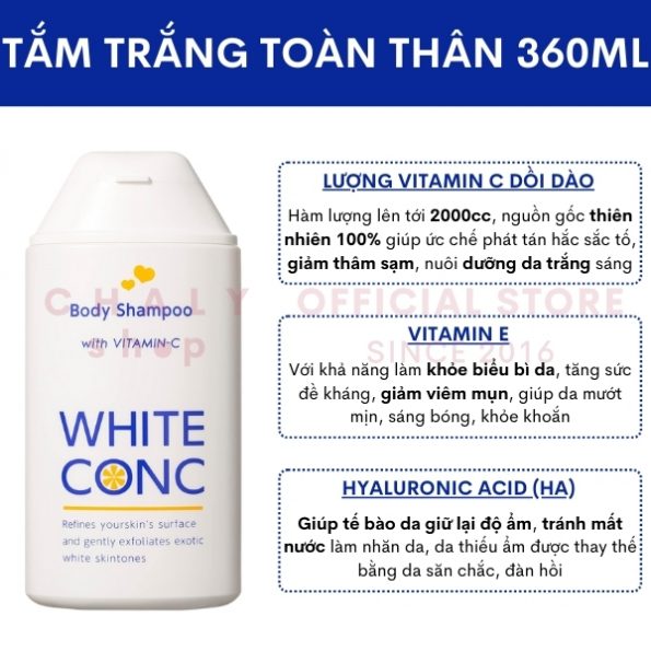 – Là siêu phẩm tắm trắng số 1 của Nhật, White Conc body shampoo mang trong mình loạt thành phần làm trắng da, chăm sóc da vô cùng đặc biệt