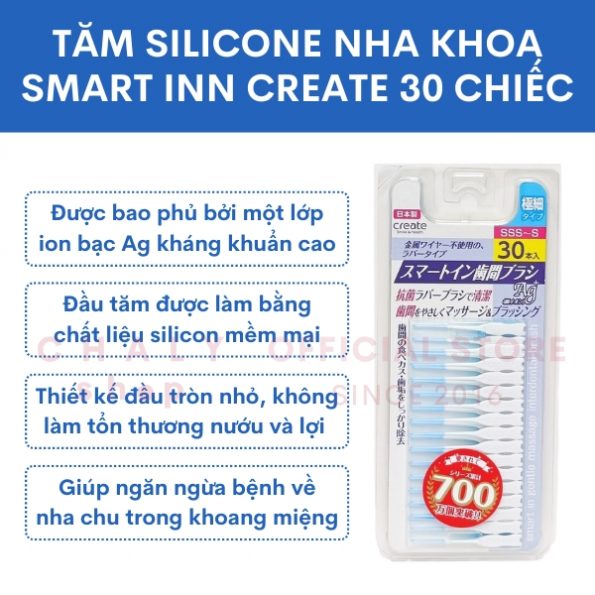 - 2 Tăm nha khoa silicone Smart Inn Create Smile & Health cỡ SSS-S Nhật có tốt không?