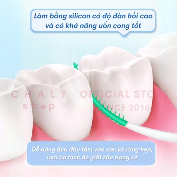 “Hàng tốt, dùng êm răng, loại bỏ tốt kẽ chân răng. Dùng thích nhất là chải kẽ, mềm nhẹ nhàng mà không sợ làm tổn thương lợi, không gây chảy máu răng. Đang niềng răng dùng cảm giác còn sạch hơn tăm nước. Mọi người nên mua nhé”