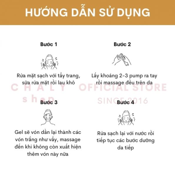 Khi bạn thoa đều gel lên mặt và bắt đầu massage thì các vón như vón tẩy trắng bắt đầu xuất hiện, tôi đã rất ngạc nhiên khi chứng kiến điều này. Sau khi rửa sạch lớp vón tẩy này đi thì da trở nên mịn màng mướt mát tức thì !!!