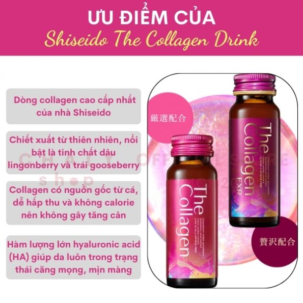 – The collagen Shiseido dạng nước của Nhật là thức uống làm đẹp da, chống lão hoá cực kỳ hiệu quả cho phụ nữ