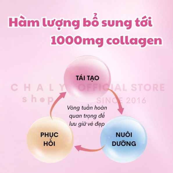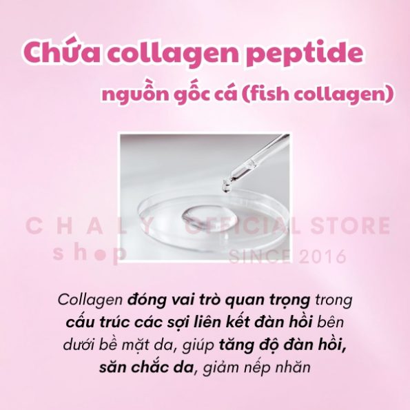 – Mục đích sử dụng: Bổ sung collagen, tăng liên kết đàn hồi da, giúp da săn chắc, mịn màng. Giảm nếp nhăn da. Cải thiện tình trạng da sạm khô. Giúp da sáng mịn