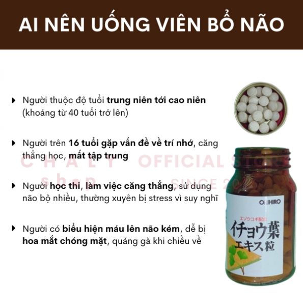Từ lâu nay, viên thuốc ginkgo biloba Nhật Bản (オリヒロ イチョウ葉エキス粒) chiết xuất từ cao lá cây ichou đã được người dân ở Nhật, Mỹ, Úc sử dụng thường xuyên để cải thiện chức năng của bộ não