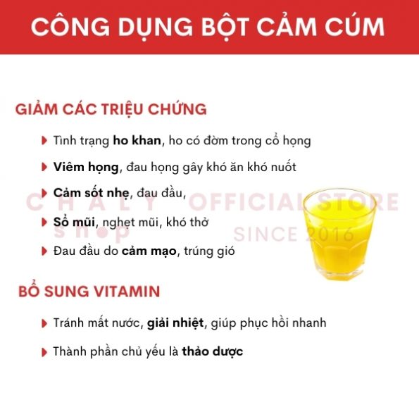– Mục đích sử dụng: Trị các triệu chứng cảm nhẹ mà không cần dùng tới thuốc kháng sinh, không gây tác dụng phụ tới cơ thể như cảm sốt, ho, sổ mũi, nhức đầu, viêm phế quản … Sử dụng cho trẻ em từ 12 tuổi trở lên