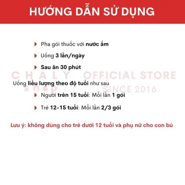 – Trẻ em từ 12 – 15 tuổi: 1 ngày 3 lần, mỗi lần 2/3 gói