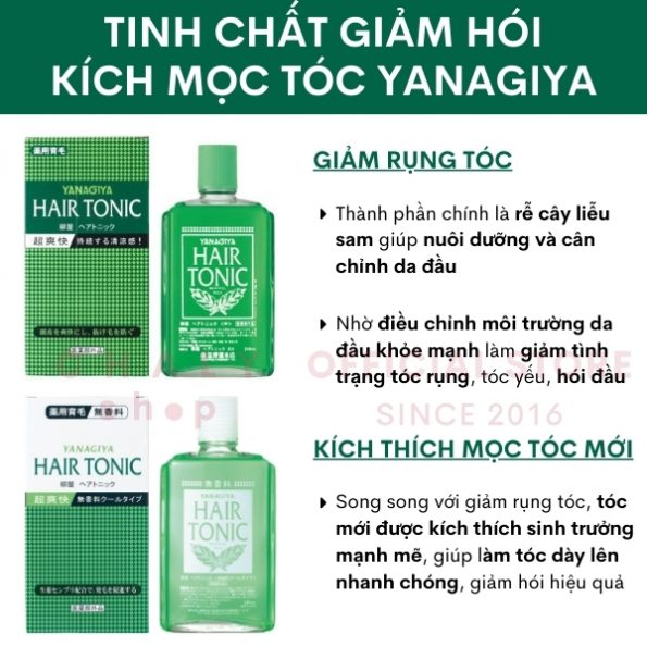 – Yanagiya hair tonic là lotion trị rụng tóc của mọi nhà, phù hợp với mọi tầng lớp người dân Nhật Bản (khác với một số sản phẩm tinh dầu trị rụng tóc mới ra đời có giá thành cao hơn gấp 2-3 lần)