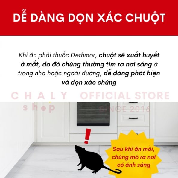 – Một ưu điểm khác của thuốc diệt chuột Nhật Bản Dethmor là xác chuột được xử lý dễ dàng