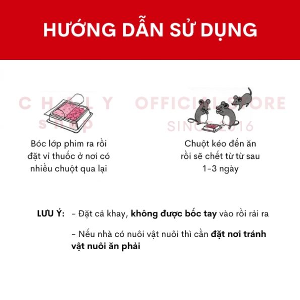 – Viên diệt chuột của Nhật sử dụng rất đơn giản, chỉ cần bóc seal rồi đặt vỉ thuốc ở những góc nhà mà chuột thường xuyên hoạt động là đã đủ mang lại hiệu quả tiêu diệt cả đàn chuột