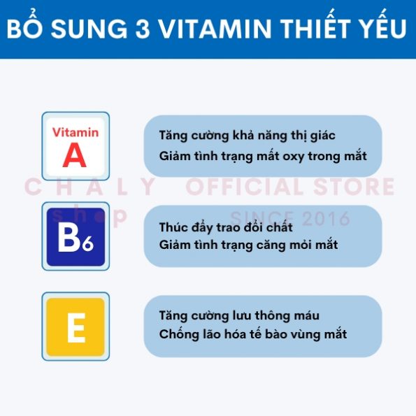 – Ngoài ra, nhỏ mắt Vitamin 40 của Nhật còn kết hợp thêm các dưỡng chất khác có tác dụng giảm tình trạng mất oxy trong mắt, giảm tải cho mắt, ngăn tình trạng mắt quá tải và tắc nghẽn mạch máu vùng quanh mắt