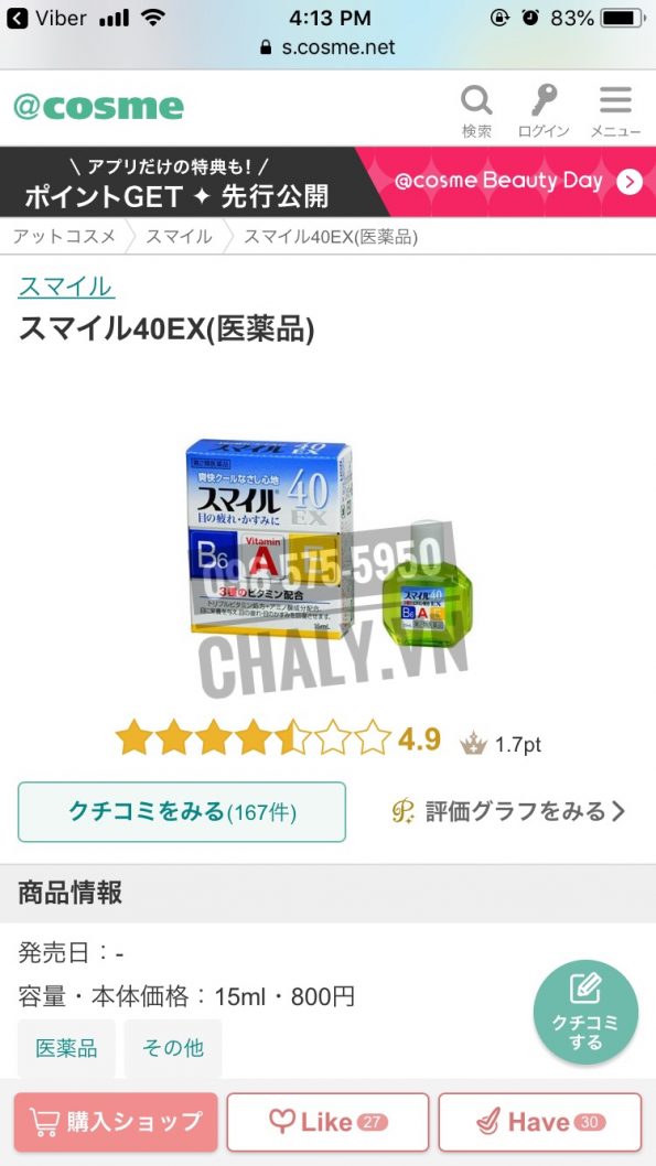 Shop Nhật Chaly cam kết cung cấp sản phẩm dung dịch nhỏ mắt vitamin A Smile EX 40 và nhiều sản phẩm chăm sóc mắt nội địa Nhật chính hãng 100%. Quý khách có thể đặt mua bằng các cách sau