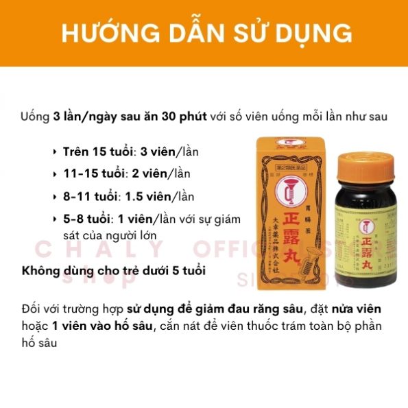 – Ngoài công dụng chính là cải thiện vấn đề về tiêu hoá như trên, viên Seirogan còn được dùng để giảm cơn đau do răng sâu khá tốt