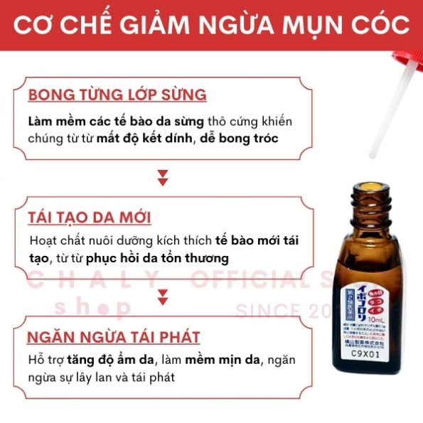 – Cơ chế hoạt động của dung dịch là thành phần salicylic acid trong thuốc trị mụn cóc của Nhật Bản sẽ loại bỏ da chết, làm mềm các tế bào da sừng thô cứng, khiến chúng từ từ mất đi độ kết dính và dễ bong tróc hơn