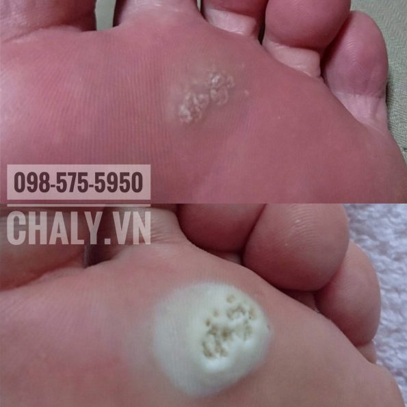 – Mụn cóc sau đó có thể bong từ từ, hoặc bằng tác động ngoại lực nhẹ (như dùng cây đẩy mụn …) thì vết chai chân tay, mắt cá sẽ rụng đi