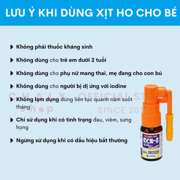 Cách dùng thuốc ho Nhật cho bé trên 2 tuổi Kobayashi Nodonool Sore Throat Spray dạng xịt họng