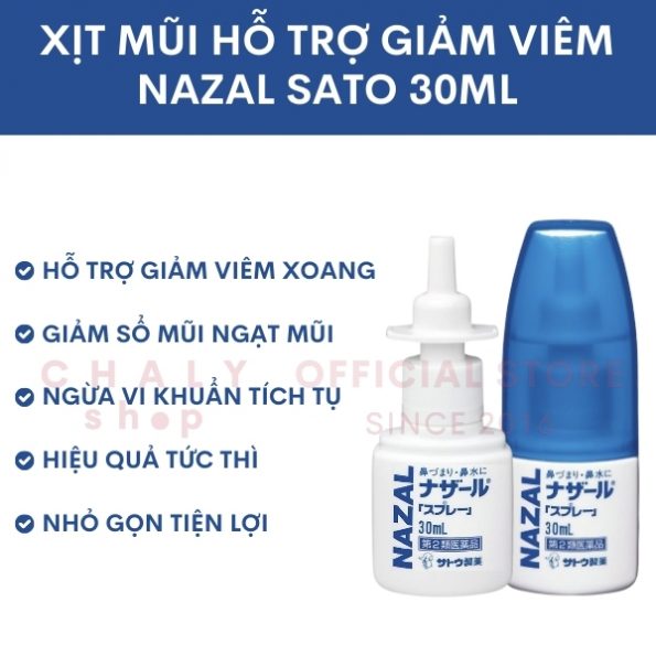 Thuốc xịt mũi Nazal Sato 30ml Nhật Bản trị viêm xoang, sổ mũi, ngạt mũi