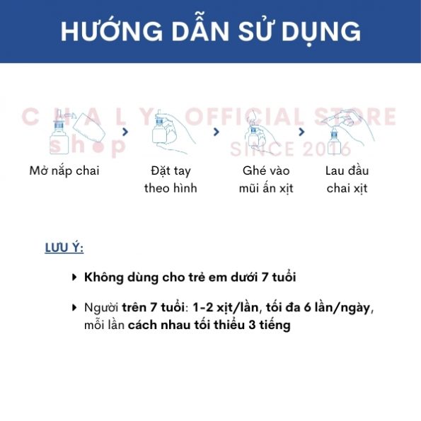 – 2 lần xịt nên cách nhau tối thiểu 3 tiếng đồng hồ
