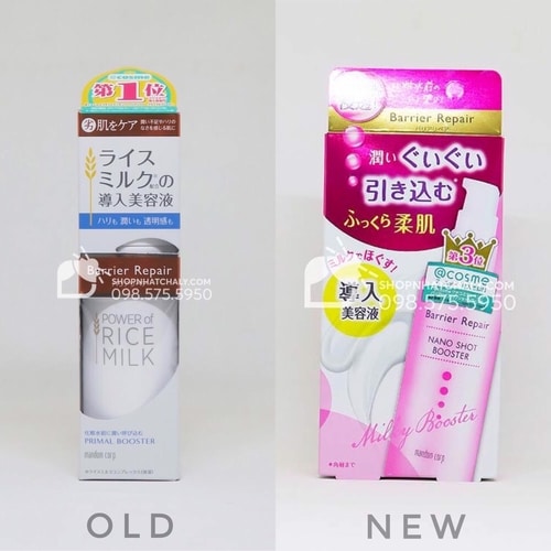 Mẫu mới nhất (phải) của tiền dưỡng chất mầm gạo Nhật Barrier Repair booster
