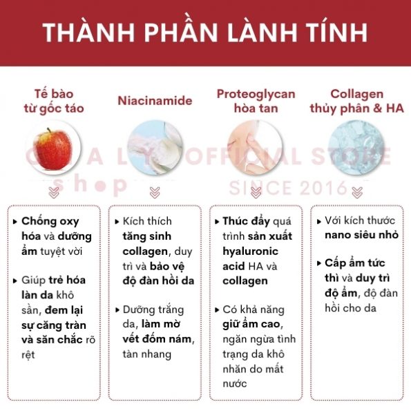 – Giúp da luôn mềm mại, ẩm mướt, căng mọng, được cấp nước đến 500%