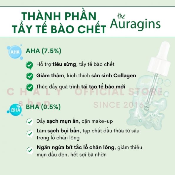 Thông tin chi tiết – Serum The Auragins 7,5% AHA + 0,5% BHA Gentle Peeling Serum