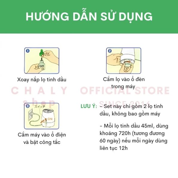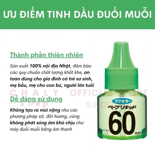 Shop Nhật Chaly cam kết bán tinh dầu đuổi muỗi của Nhật Bản Vape liquid Fumikilla và nhiều hoá mỹ phẩm nội địa Nhật chính hãng 100%. Quý khách có thể đặt mua bằng các cách sau